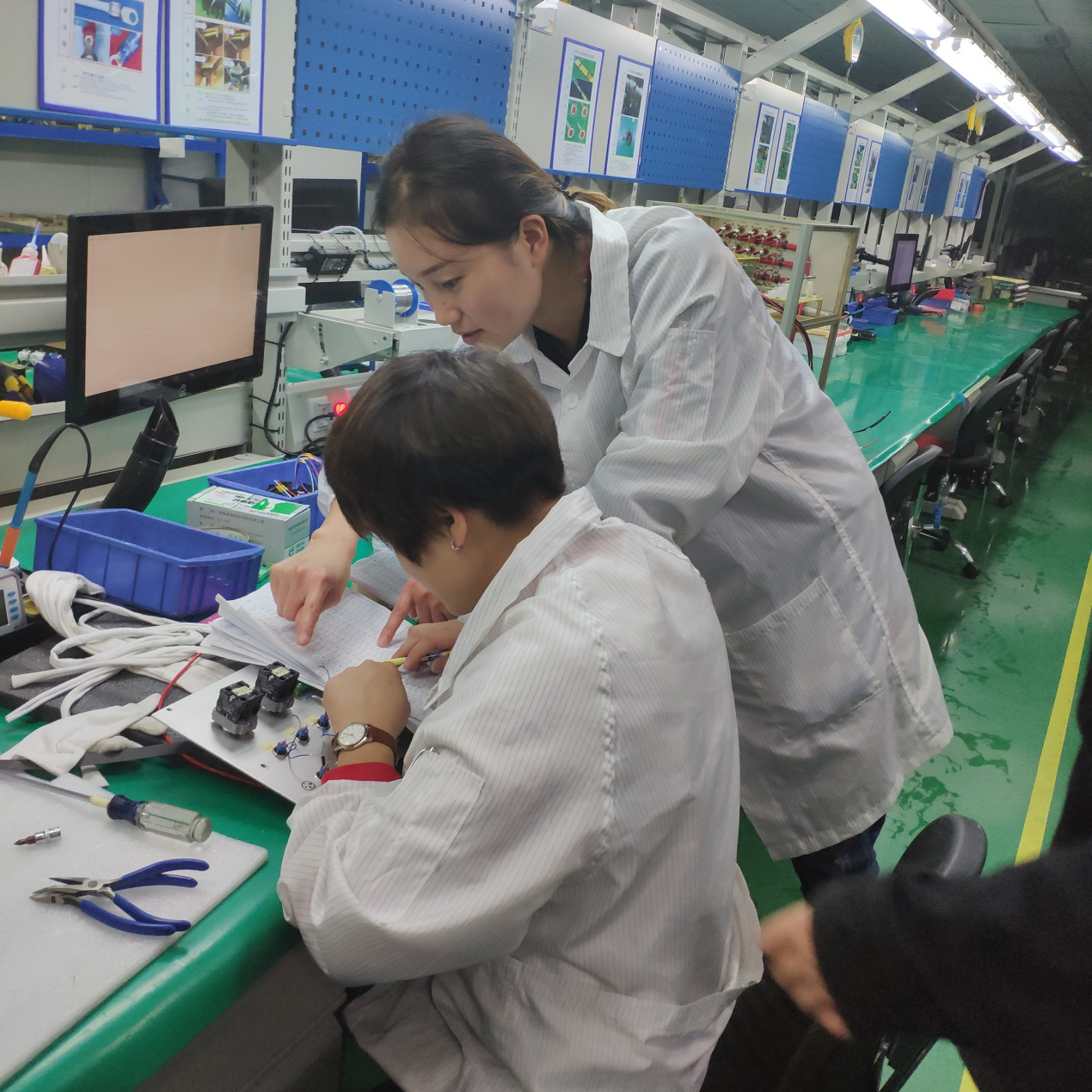通宵燈火下,高級工王萍、謝玉正在裝配某項目的綜合配電機箱。她們經過認真思考,嚴謹慎重地完成機箱內每個配件的裝配、每根螺釘的緊固、每根導線的走線等工作任務。為了保證此款配電機箱能夠在11月29日準時發貨,王萍和謝玉放棄被窩的溫暖,忍受深夜的寒氣刺骨,經過一夜嫻熟且有條不紊的配合下,她們準時將電源送檢和調試,按期順利地將電源發至客戶。工作結束后,王萍和謝玉兩位員工僅休息一上午,又以飽滿的工作熱情投入到當天下午的生產工作中。