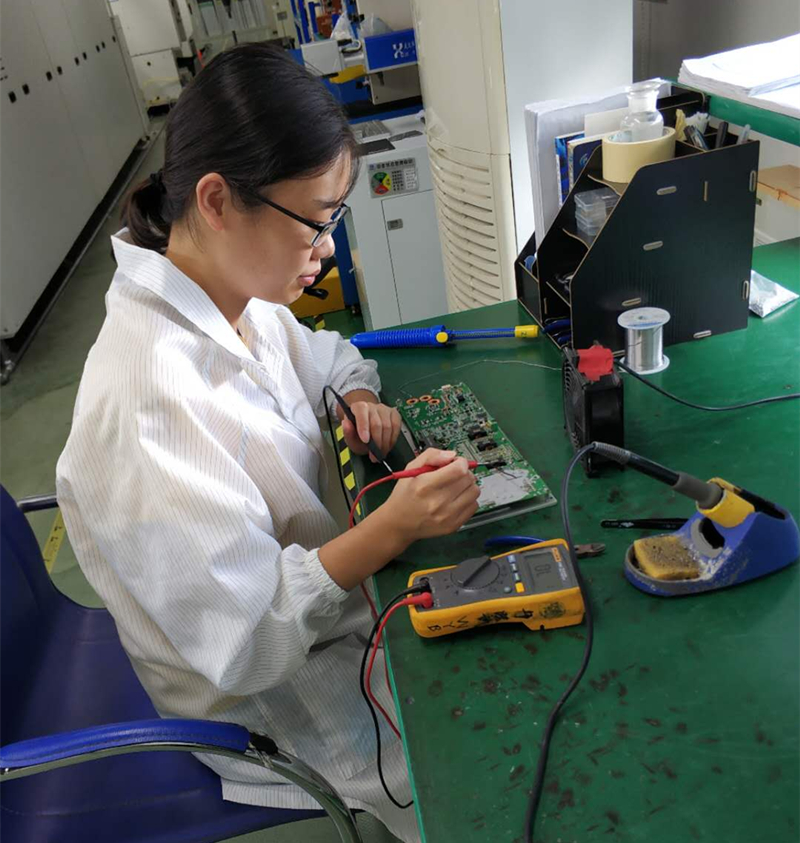 生產二部線長呂蘭蘭,人如名字一樣樸素簡單, 她那瘦小而堅韌的身影,每天準時出現在104三樓車間,帶領著由退伍軍人、大學生和比她大很多的老員工組成的混合隊伍,為公司生產加班加點。她也不停地在一排排現代化的智能設備中穿梭,像一顆螺絲釘,哪里有需要便馬上補上空缺,在送三防送篩選的路上風雨無阻,在驗收申請產品入庫時努力做到準確無誤。一件件合格電源從她們那布滿老繭的雙手中流向祖國最需要的地方。這群心靈手巧的“小人物”不僅創造財富,也創造了“勞動最光榮”的團隊氛圍。