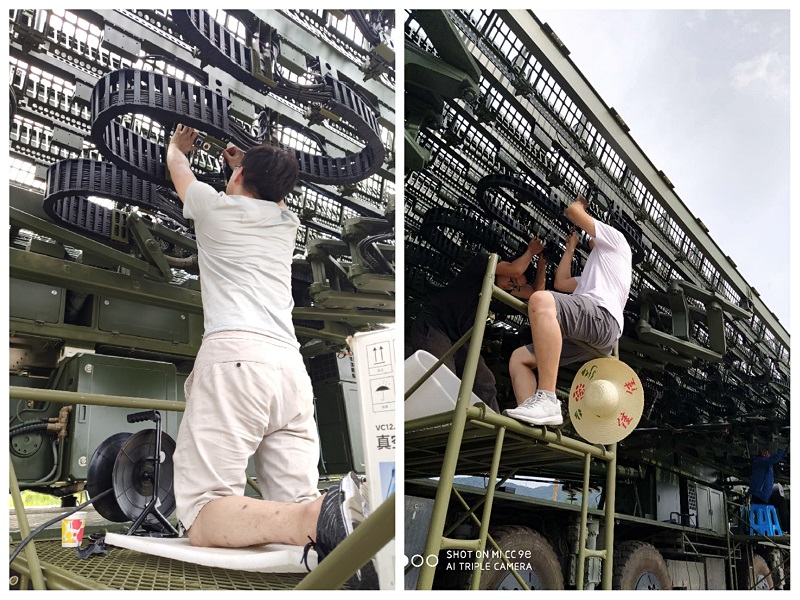 廣德,某基地上,系統(tǒng)電源事業(yè)部的小伙們正在執(zhí)行項目聯(lián)調(diào)任務,他們已經(jīng)在基地上駐扎了近二十天。最初梅雨肆虐,為趕項目進度,只能在雨中調(diào)試,白天任風雨吹打,晚上蚊蟲作伴。近日高溫來臨,他們又迎來了高溫作業(yè)的挑戰(zhàn),盡管揮汗如雨,他們依舊不減手中干活的速度,笑稱“為了軍工事業(yè),這些辛苦都是值得的,就當鍛煉身體啦!”