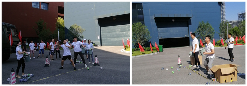 “合作共贏”項目開始后,火熱的驕陽下,只見沙包滿天飛。這是一場默契的考驗,丟沙包者和接沙包者之間需配合默契,觀察細致,才能順利接上沙包。只見華耀代表隊手中的沙包“咻咻”地飛向空中,又穩(wěn)當?shù)剡M入盛沙包的桶中,現(xiàn)場氣氛熱鬧非凡。