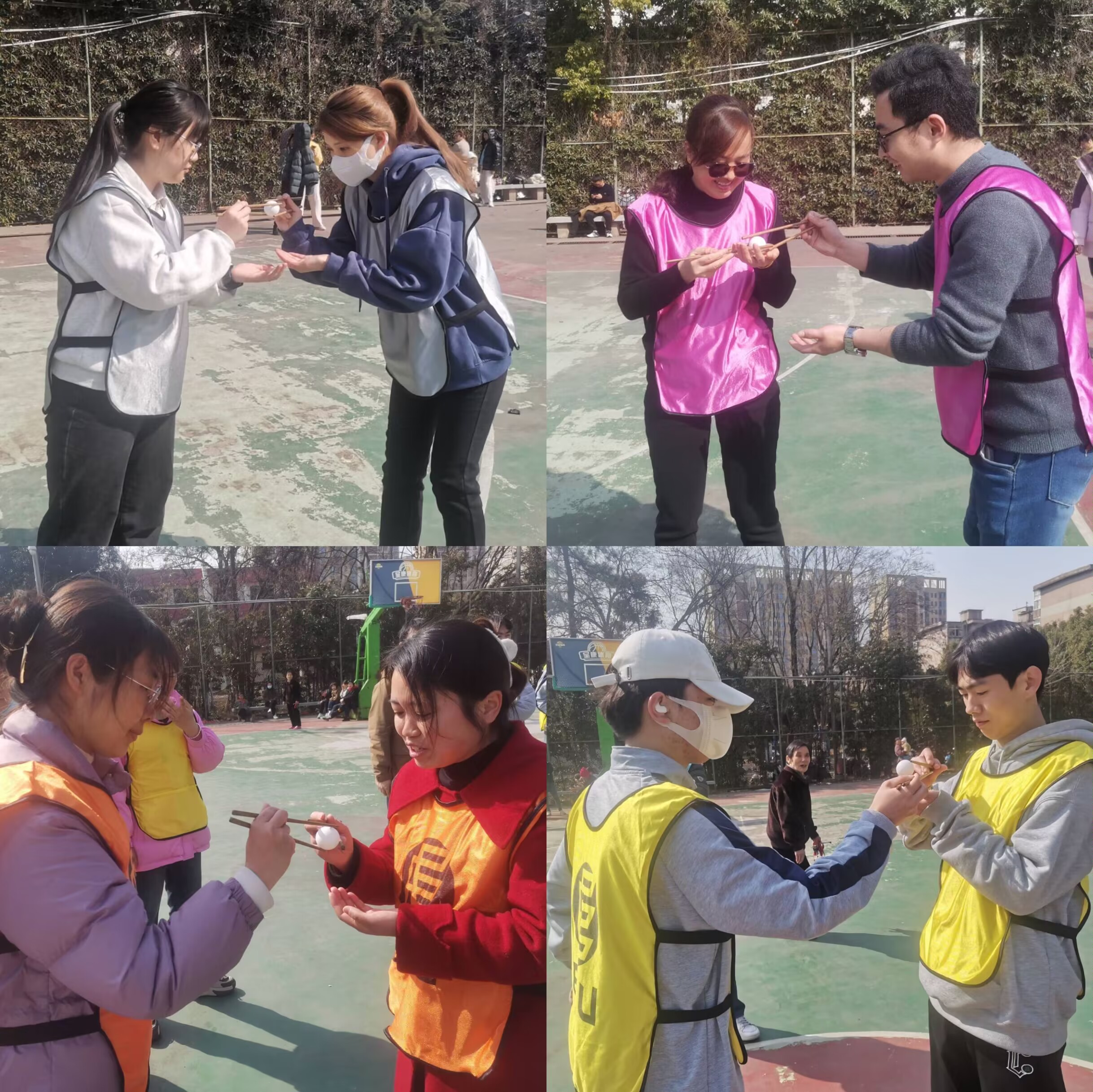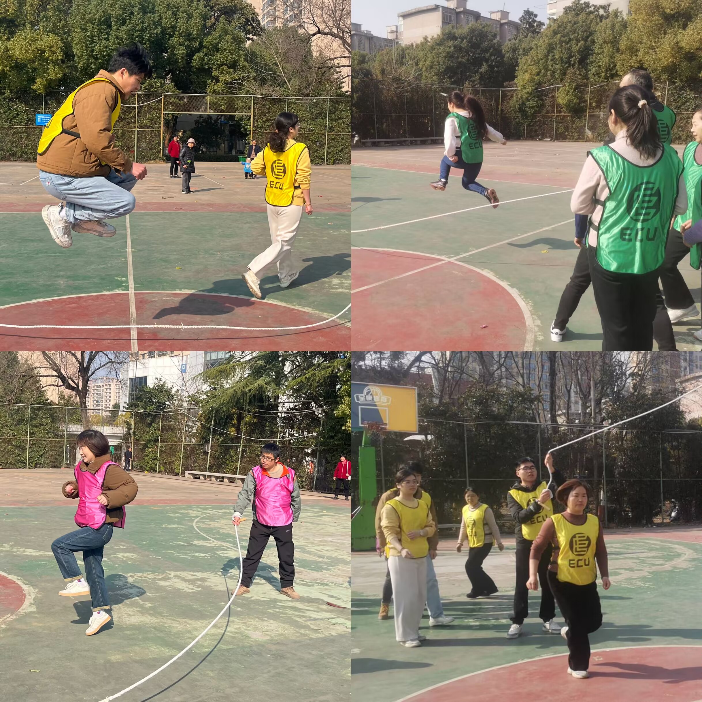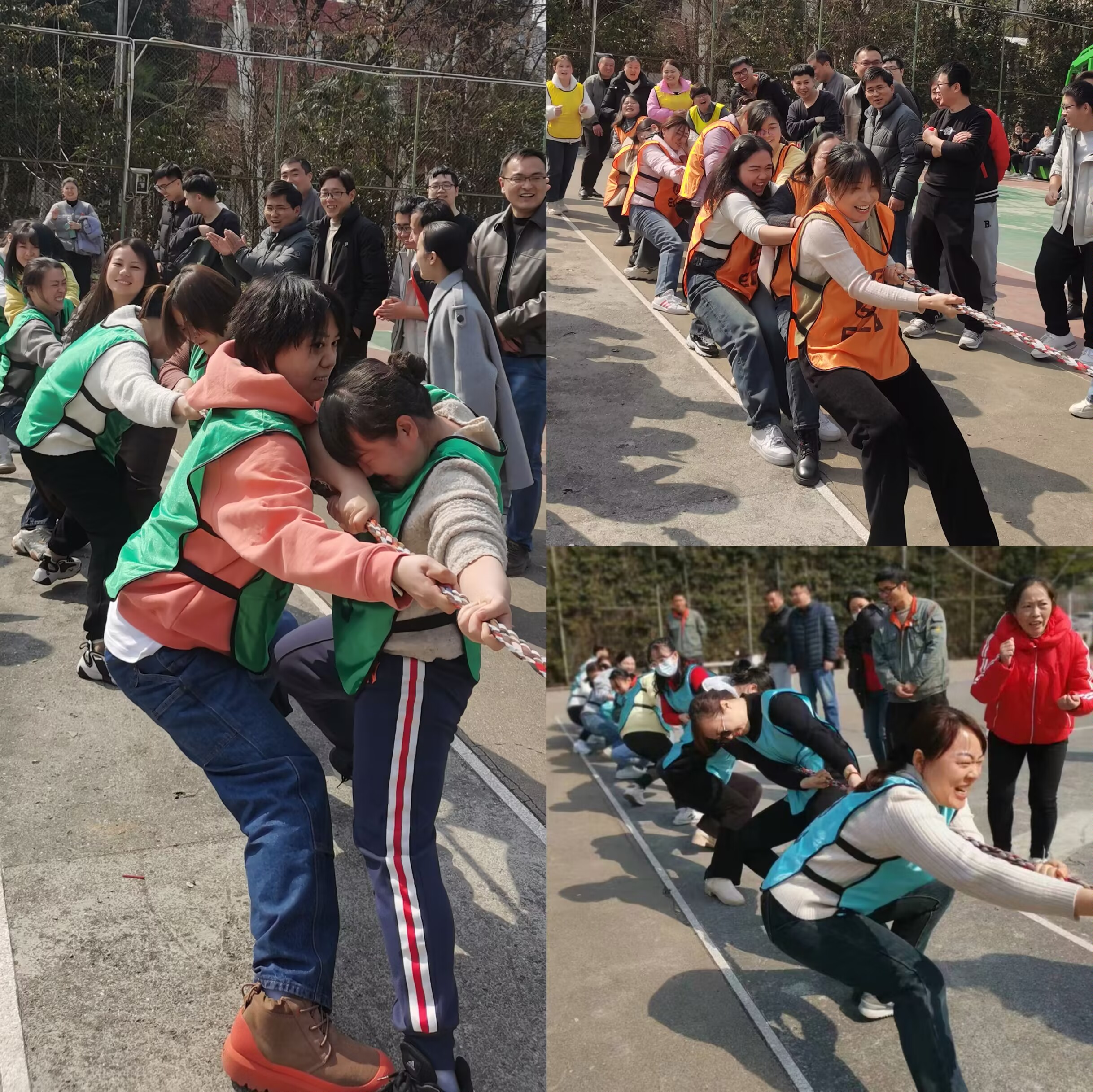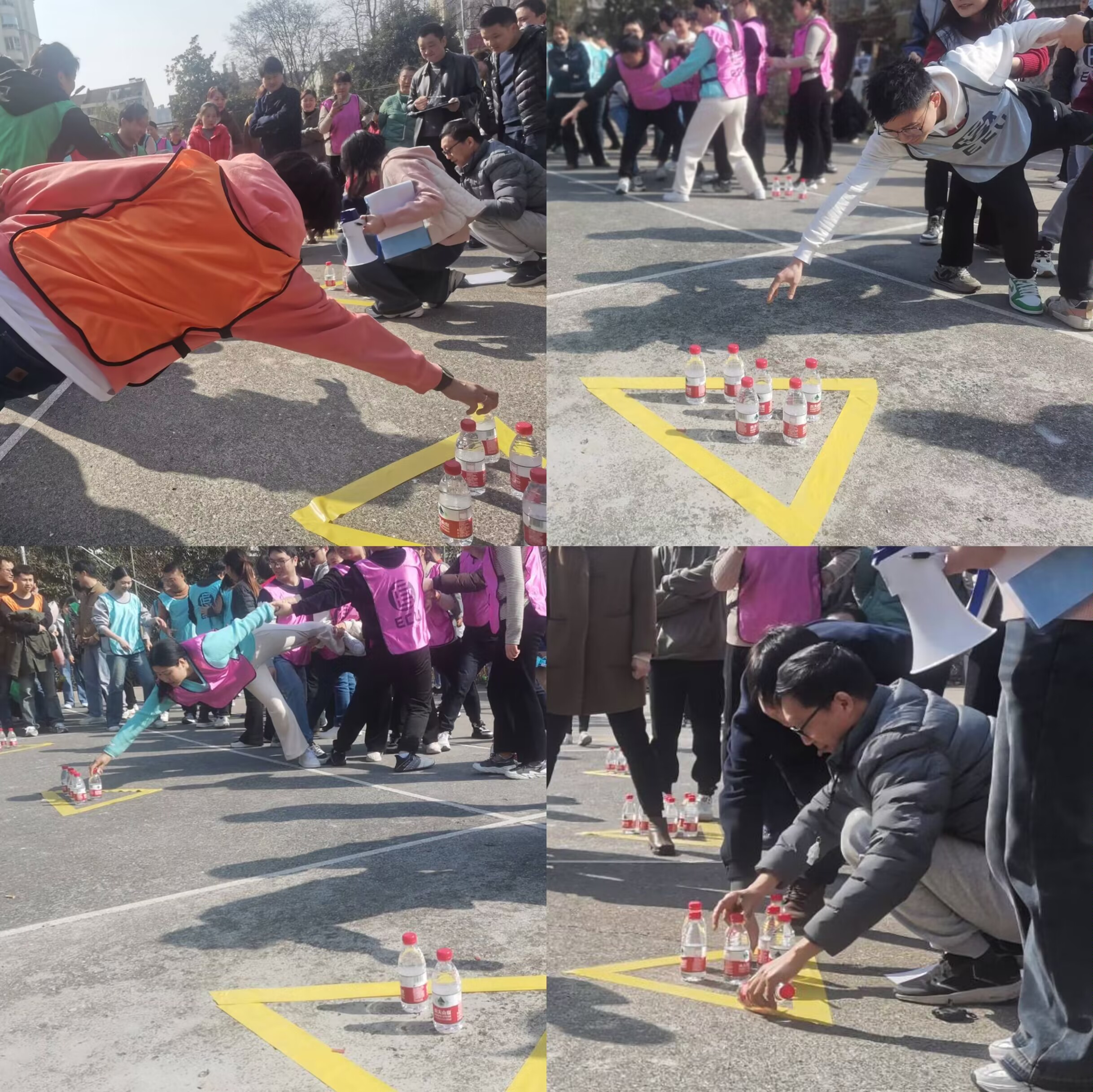 本次運動會共設“勢均力敵”(拔河比賽)、“齊心協力”(跳繩接力)、“攜手共進”(群龍取水)、“勠力同心”(筷子運球)四個團體項目,活動現場氛圍熱烈,加油聲、吶喊聲此起彼伏。賽場旁,裁判們的公正裁決,是賽場上的“控場大師”;工作組的熱心服務,是不可或缺的“最強輔助”;啦啦隊的歡呼吶喊,是當仁不讓的“氣氛擔當”。項目設置方面,既是體力的角逐,又是腦力的較量;既有運動協調力的展示,又有團隊協作力的考驗,大家積極投入比賽項目中,配合默契,“燃”爆全場。