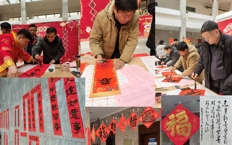 中午,書法界大咖葛茯苓、黃開平、馬德余三位老師親臨書法展現場助陣,與公司小分隊們一起,歡歡喜喜寫春聯,熱熱鬧鬧迎新年。