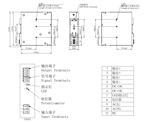 ●使用TS35/7.5或TS35/15安裝,支持背板安裝