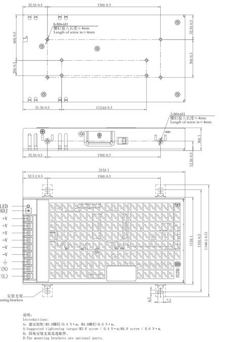 ●自然風冷(200W以下),溫控風扇(250W以上)
