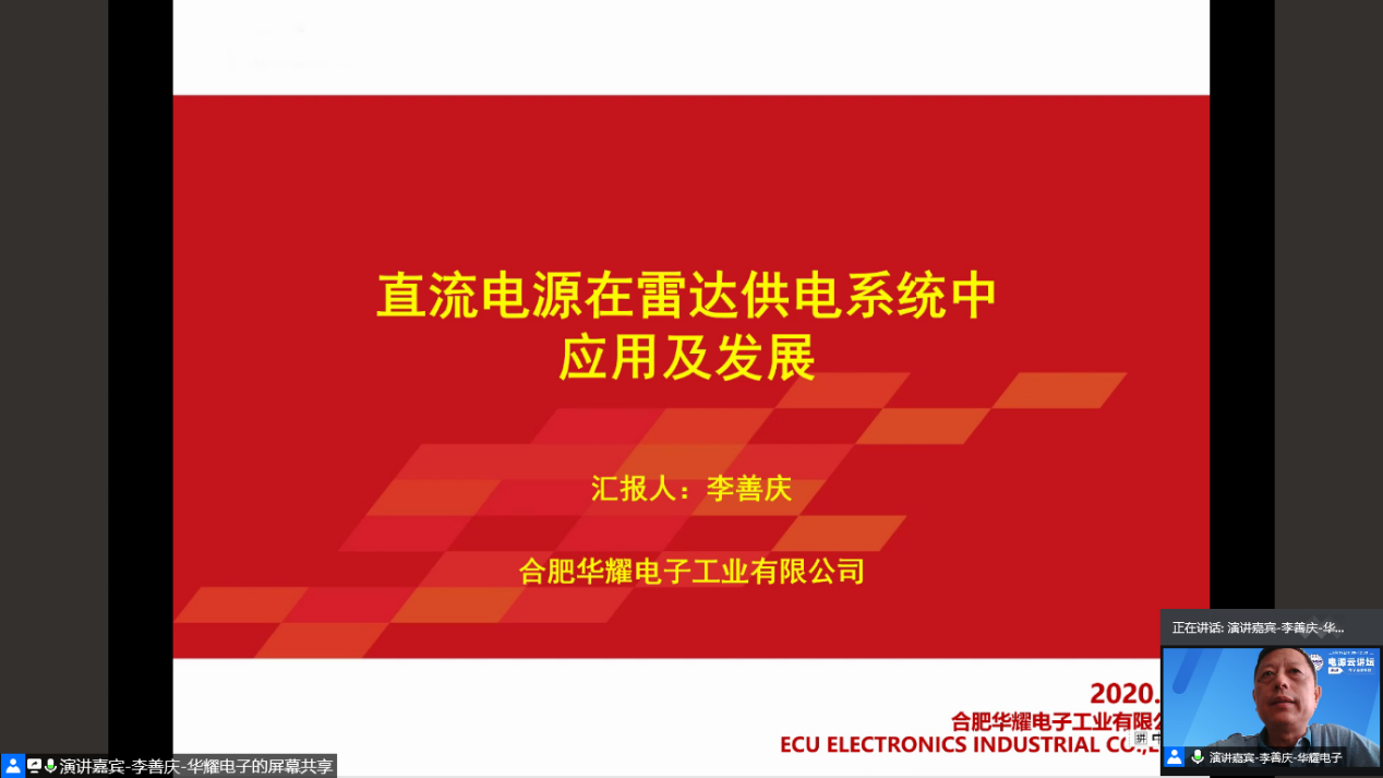中國電源學(xué)會副理事長、南京航空航天大學(xué)阮新波教授主持會議;中國電源學(xué)會直流電源專業(yè)委員會副主任、華耀電子總經(jīng)理周世興作為互動嘉賓之一受邀參與。華耀電子副總經(jīng)理李善慶針對直流電源在雷達(dá)供配電系統(tǒng)中的應(yīng)用及發(fā)展做專題報告。