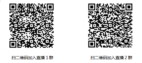 本次活動的視頻回放,可通過釘釘直播群進(jìn)行觀看,請用釘釘APP掃碼,檢查是否已在群內(nèi),或申請入群。【釘釘兩群聯(lián)播,目前直播1群已滿,可掃碼進(jìn)入直播2群。加入任一群即可,已在群內(nèi)的無需加入新群。】