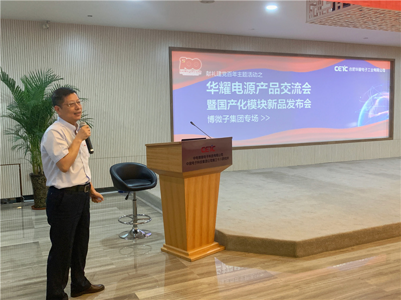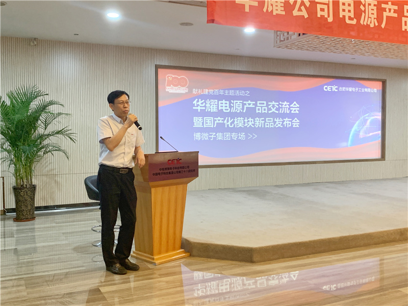 中電博微軍工部副主任、華耀公司董事黃鶴在發(fā)布會(huì)上致辭,他指出,華耀公司是電科集團(tuán)的專業(yè)化電源公司和電源模塊集采平臺(tái),是中電博微軍民品產(chǎn)業(yè)的中堅(jiān)力量。“十四五”開局之年,公司在技術(shù)、市場(chǎng)、管理上不斷謀求改革創(chuàng)新,取得了較好成效。同時(shí)在國(guó)內(nèi)外復(fù)雜環(huán)境和行業(yè)競(jìng)爭(zhēng)態(tài)勢(shì)下,公司發(fā)展也遇到了極大的挑戰(zhàn)和壓力。華耀人不言放棄、迎難而上,秉承“質(zhì)量為先、客戶至上”的信念,在高質(zhì)量發(fā)展的路上步伐堅(jiān)定、追求卓越。期待中電博微各院所公司給予華耀關(guān)心和支持,為華耀的發(fā)展出謀劃策,鼓勵(lì)華耀用更出色的業(yè)績(jī)回報(bào)客戶厚愛。