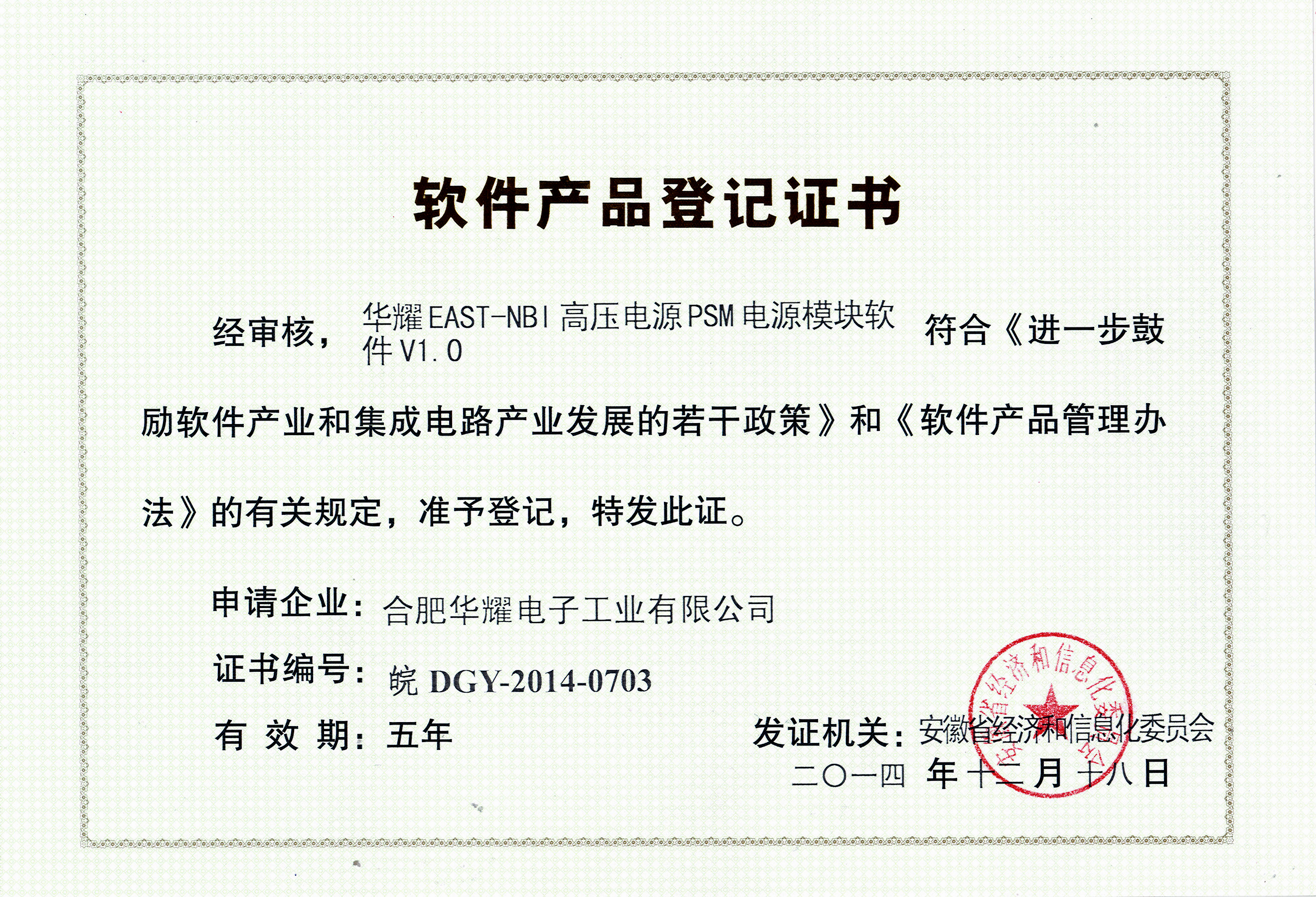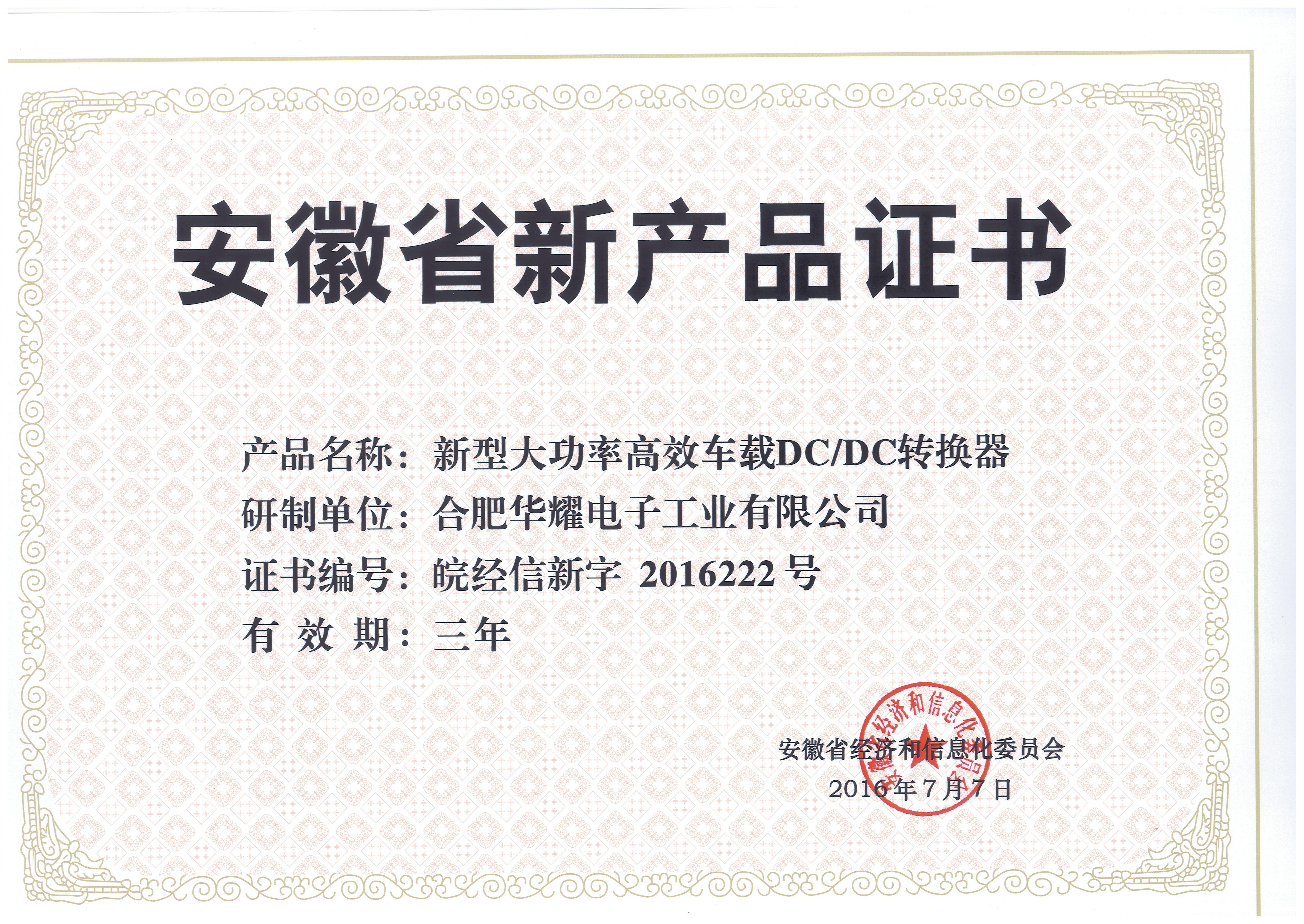 安徽省新產(chǎn)品證書