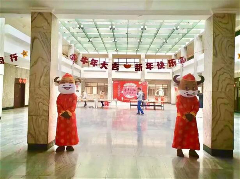 2021年2月2日正午,淠河路所區101大樓空曠的一樓大廳內“披上紅妝”,可愛的牛娃、福娃“空降現場”,三張寬大的書案上,整齊地擺放著筆墨...